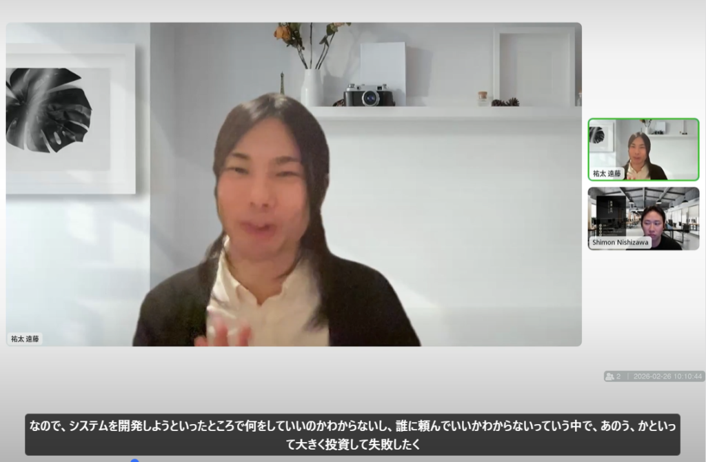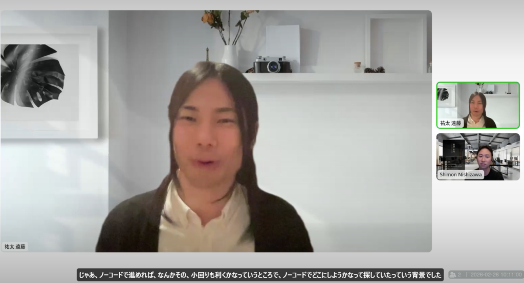 そのノーコードで踏み切れたのも、いざ本当にさらにちゃんとしたシステムにしていきたいとか、これを多くの人に届けていきたいよねって。さらにアップグレードしたい場合には、その時に初めてちゃんとプログラミングで作っていきましょうっていうお言葉もいただいたんで。そうやって作り替えもできるんだって。だったら、ひとまずミニマムでやりたいなっていうところがちょうど僕たちの意向としてもあったので、そういった意味ではまさにぴったりの選択肢だったなと思いますね。