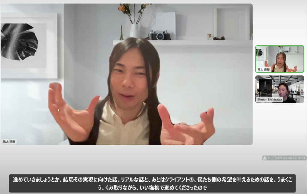 適切なリスクの取り方と、適切なスピード感っていうの、ある意味コントロールしてもらいながら実際の形になるっていうところまで伴走してくださるので、僕たちはちょうどそういうの求めてたので、本当に不満はなく、気持ちよく最後まで一緒走り切ってくださったっていう感じですね。