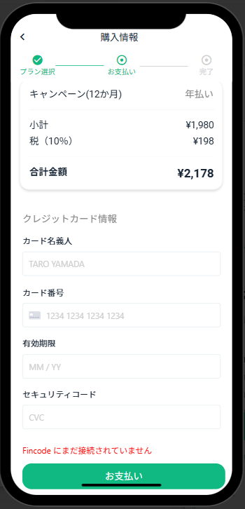 「読むより触ったほうが早い」という方へ。「プラン選択→支払い情報入力→決済完了」までの一連の流れを、デモ体験でそのまま操作できます。UI品質や操作感を実際に確かめてください。